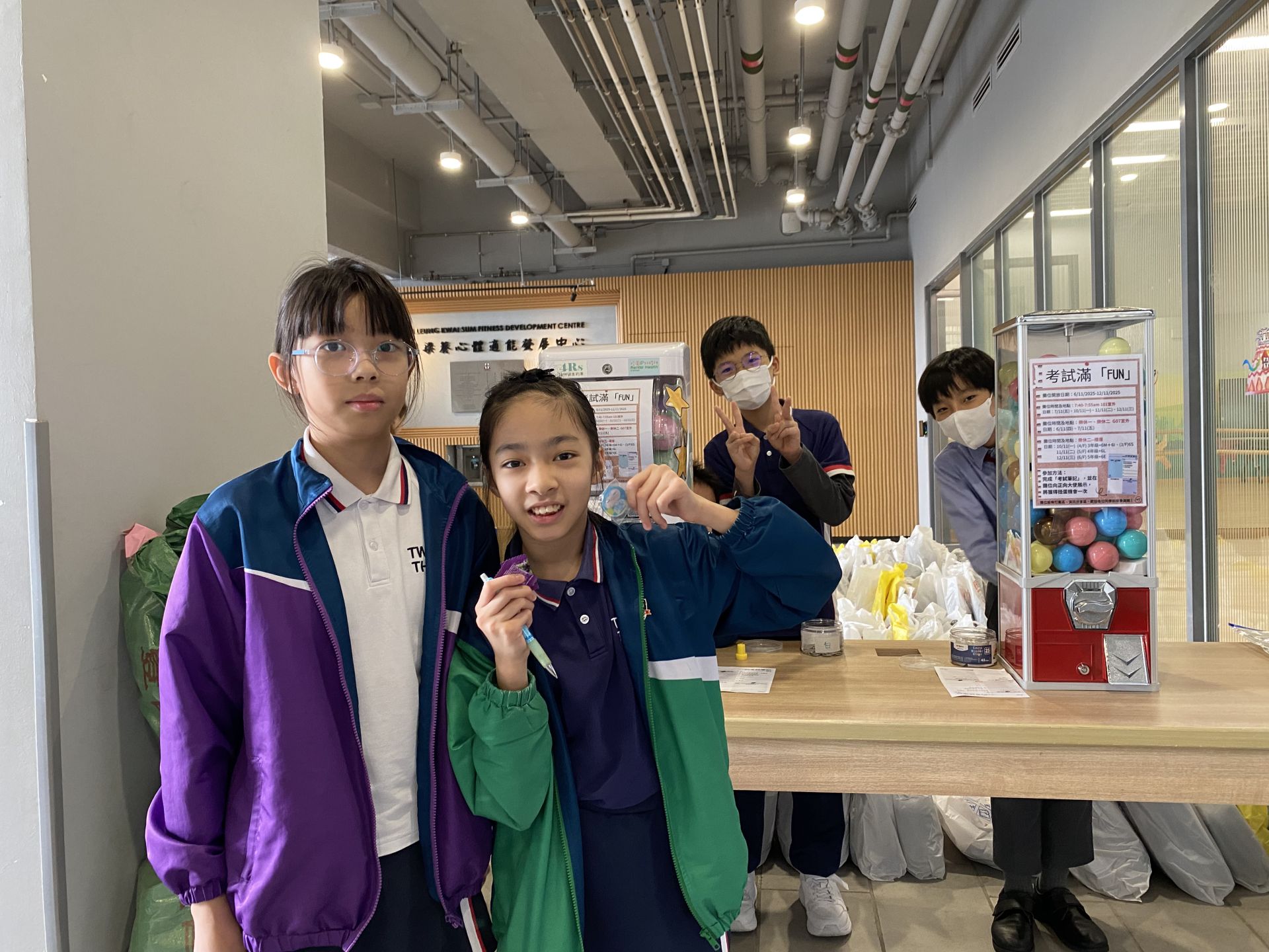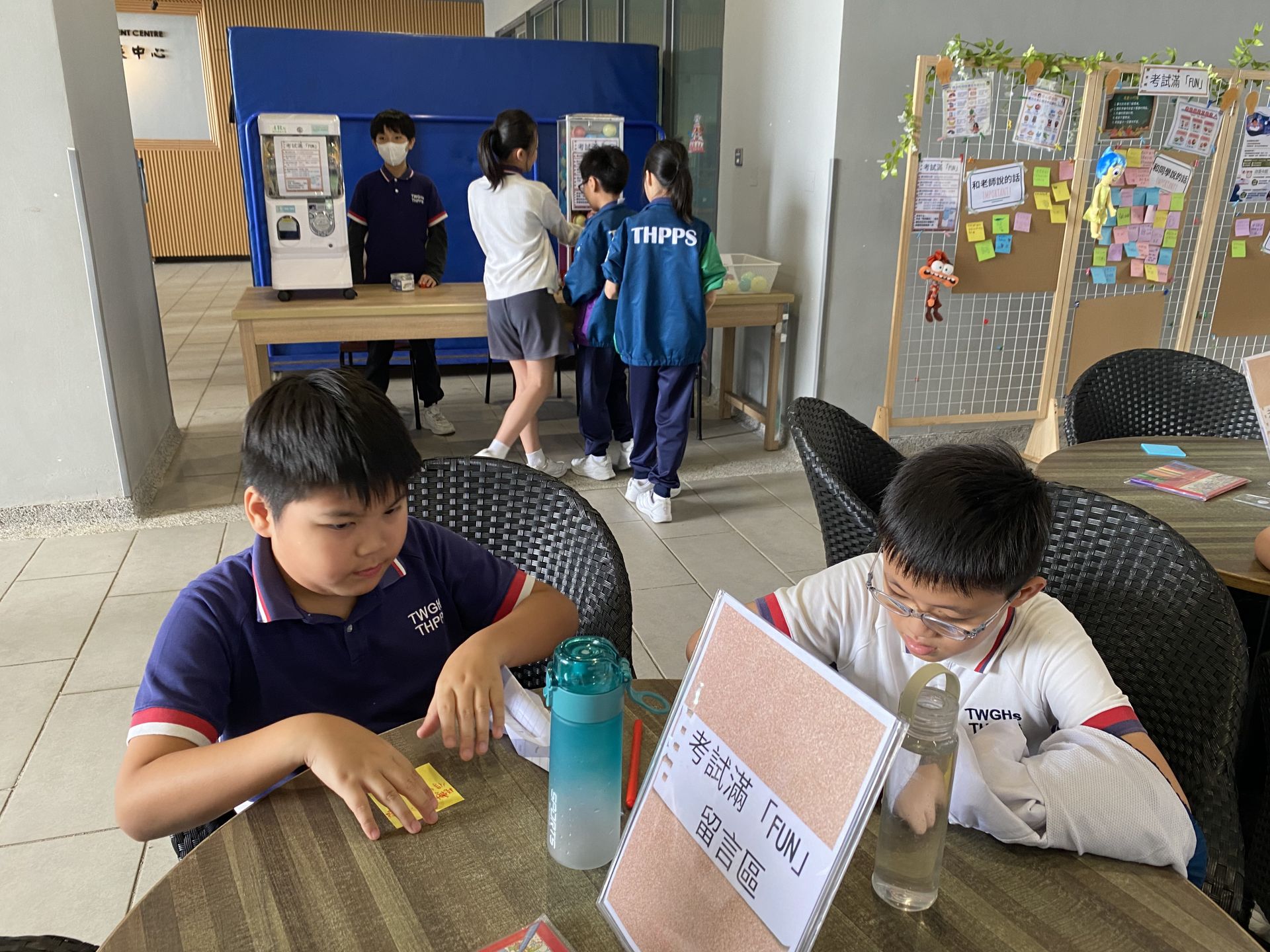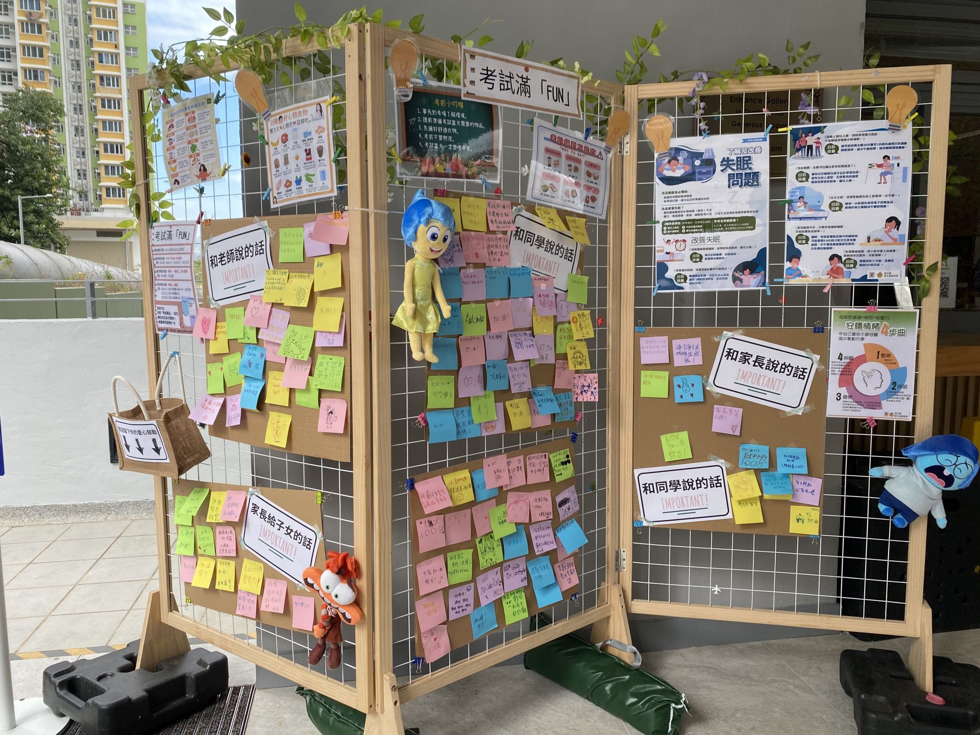 迎接今學年第一次考試,正向大使為同學準備了一個打氣攤位-考試滿「FUN」,鼓勵同學為自己定下目標及達成目標的方法、找尋自己的減壓方法、並虛心地向身邊的家人或老師請教自己可以改善的地方。當然少不了老師、家長對同學,及同學們互相之間的鼓勵呢!各位同學們,祝大家在考試裡能好好發揮啊!
